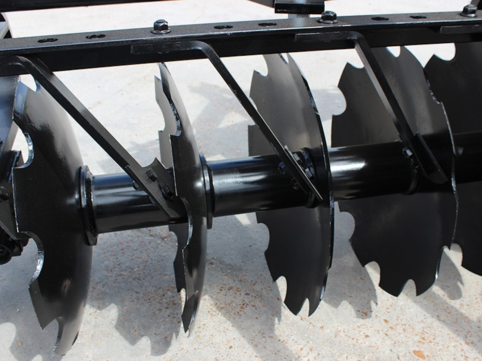 - Equipped with 18″ x ¼” cutout blades on small-frame harrows and 22″ x ¼” cutout blades on large-frame harrows