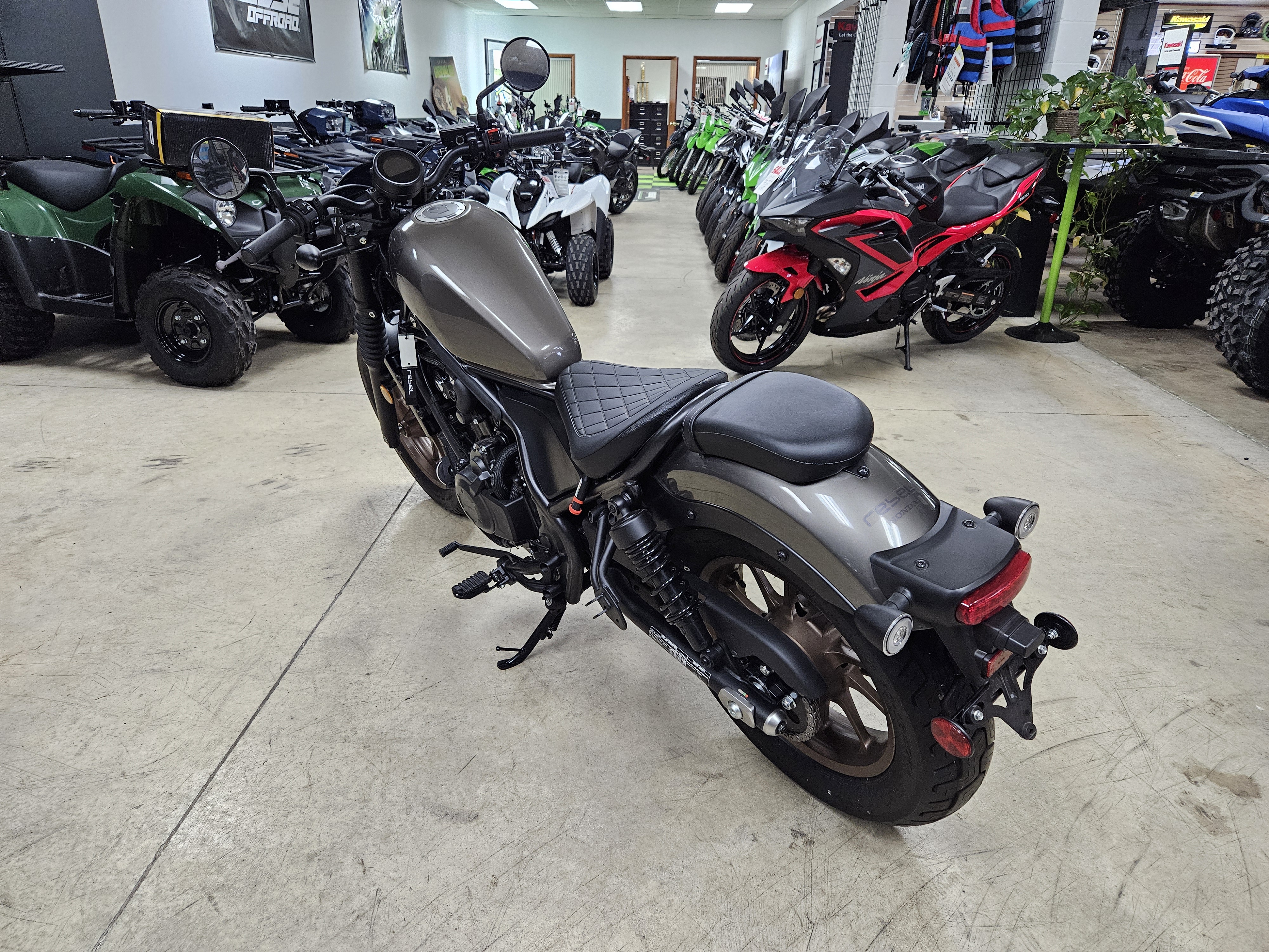 Rebels are the ones who refuse to compromise, just like the Rebel 500 refuses to choose between power, precision and style. It’s able to deliver all three in excess, thanks to the timeless cruiser styling, a lean twin-cylinder engine and user-friendly powerband. While contemporary features like a full LED lighting package, our Honda slipper/assist clutch and optional anti-lock braking system make for an uncompromising ride down the straights as well as the twisties. New colors for this year will pair perfectly with your favorite gear or accessories, helping you personalize a modern cruiser that refuses to be ignored. Or check out the Rebel 500 ABS Special Edition for a model that comes complete with our most popular accessories, like the diamond-stitch seat and headlight cowl.