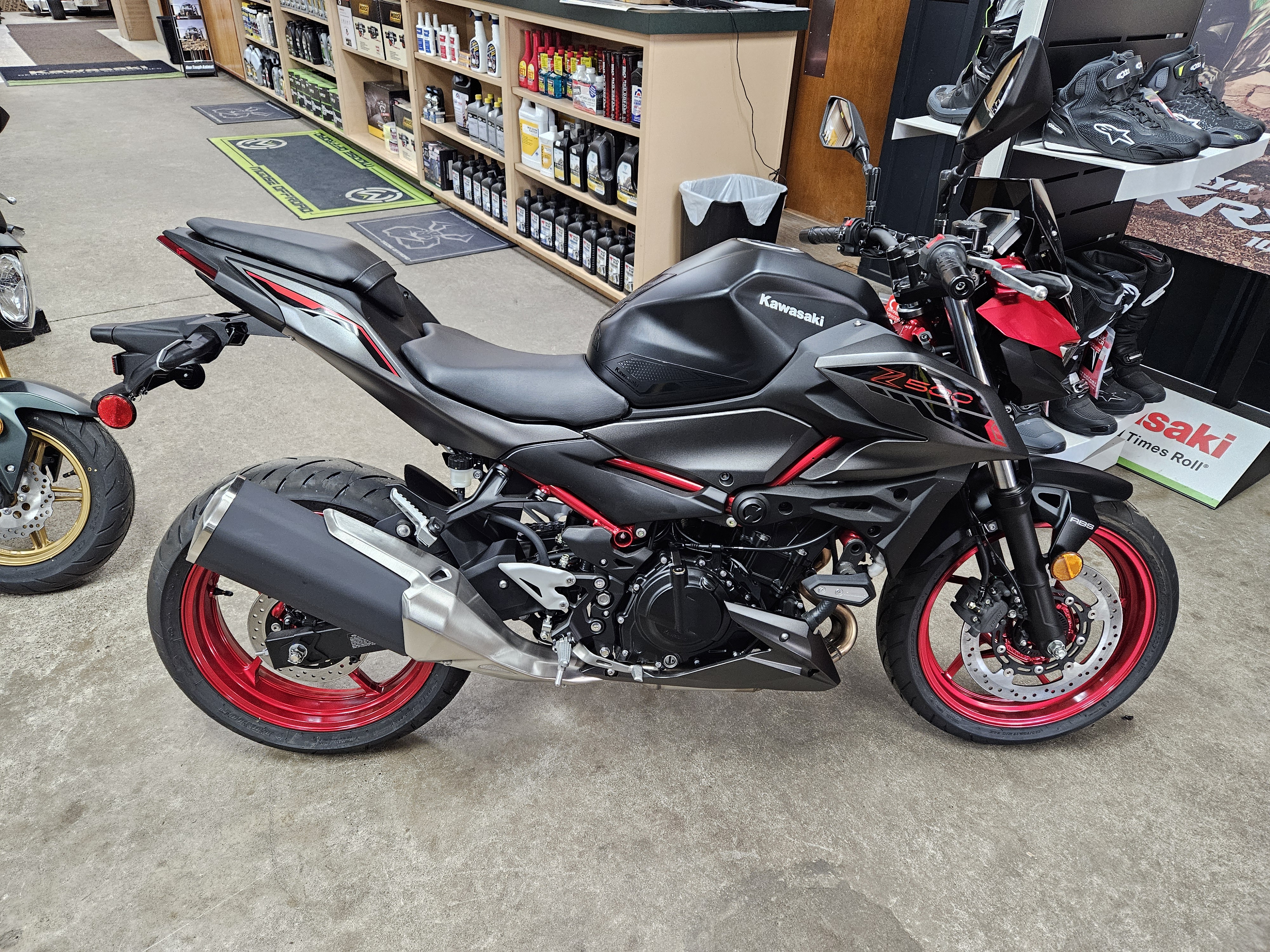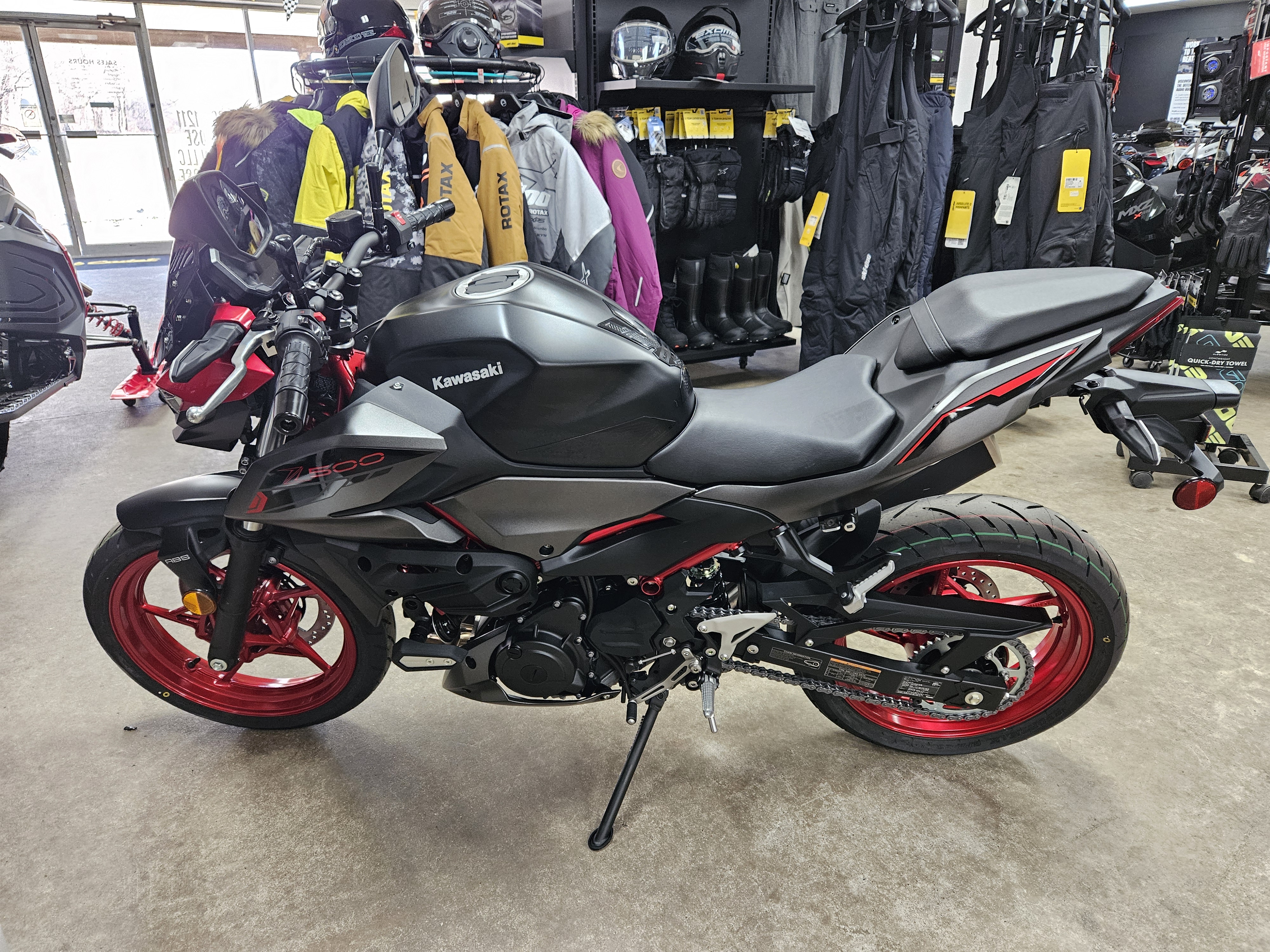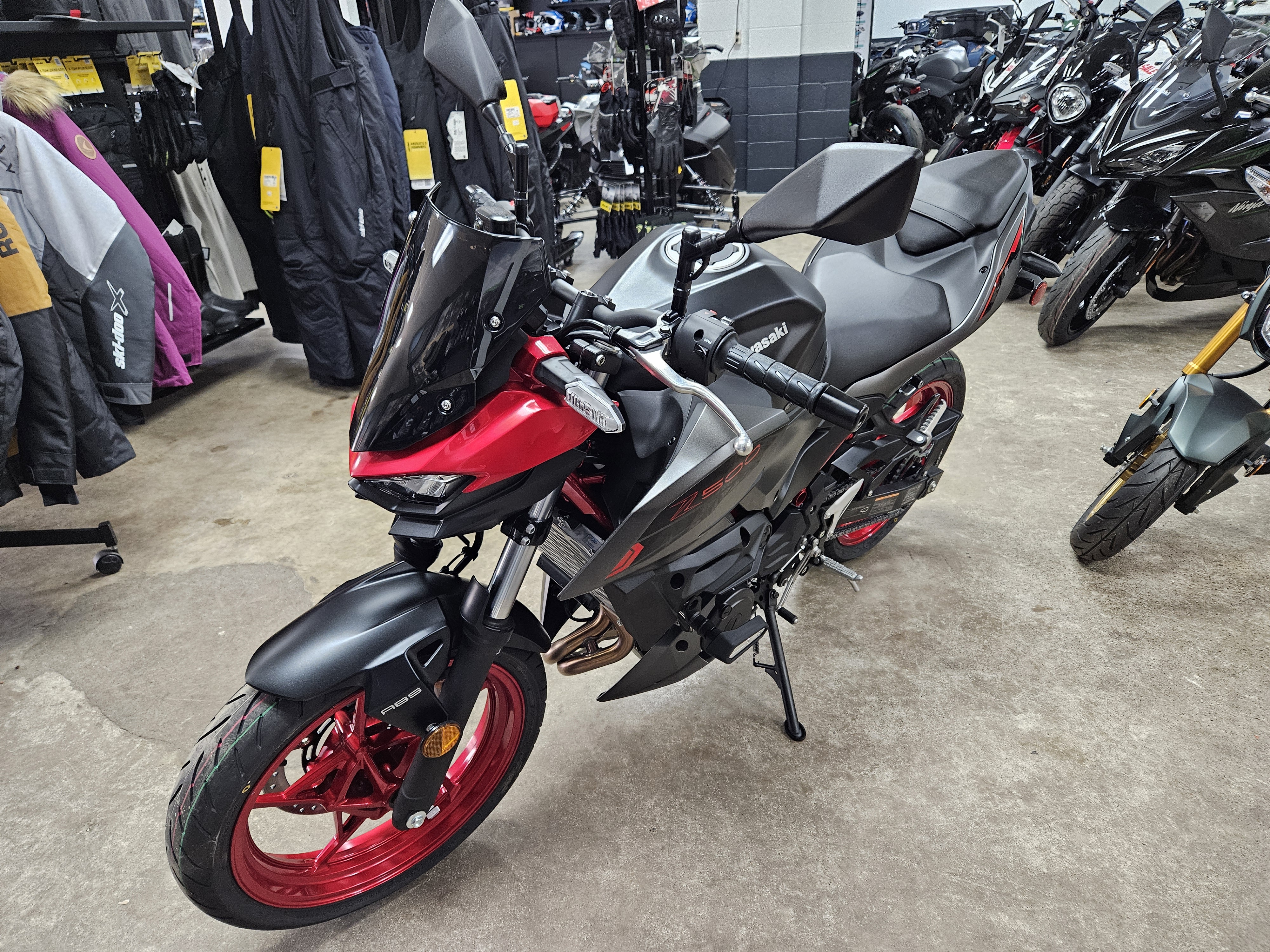 2025 Kawasaki Z500 SE ABS Candy Persimmon Red/Metallic Flat Spark Black/Metallic Matte Graphenesteel Gray - A63242