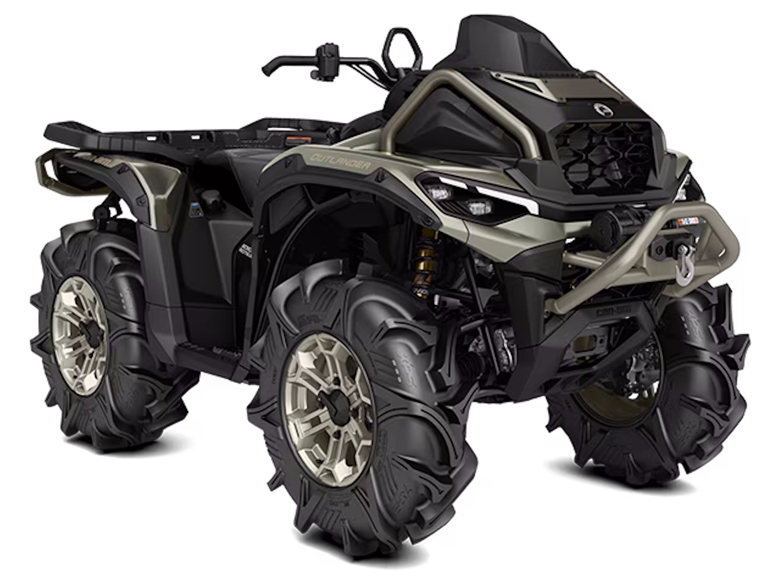 MADE WITH MUD IN MIND. Upgraded to maximize the power of the Rotax® 850, get a 3,500 lb winch with synthetic rope, upgraded suspension, wheels & NEW 30 in. XPS Swamp king XL tires that will get you through the nastiest, muddiest terrain. Now with relocated front bumper, mud dedicated rear rack with integrated handles and combined with Can Am's renowned Visco-4Lok front differential, the game has changed. Learn more.