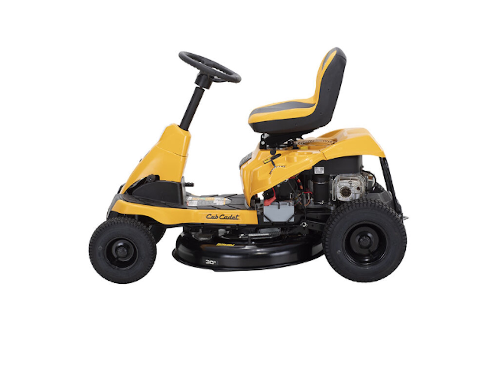The Cub Cadet® CC30H 30-in. 10.5 HP* Compact Riding Lawn Mower is designed to fit through and be stored in small spaces. LED headlight designed for visibility in low light conditions. A high-back seat engineered to provide elevated back support.