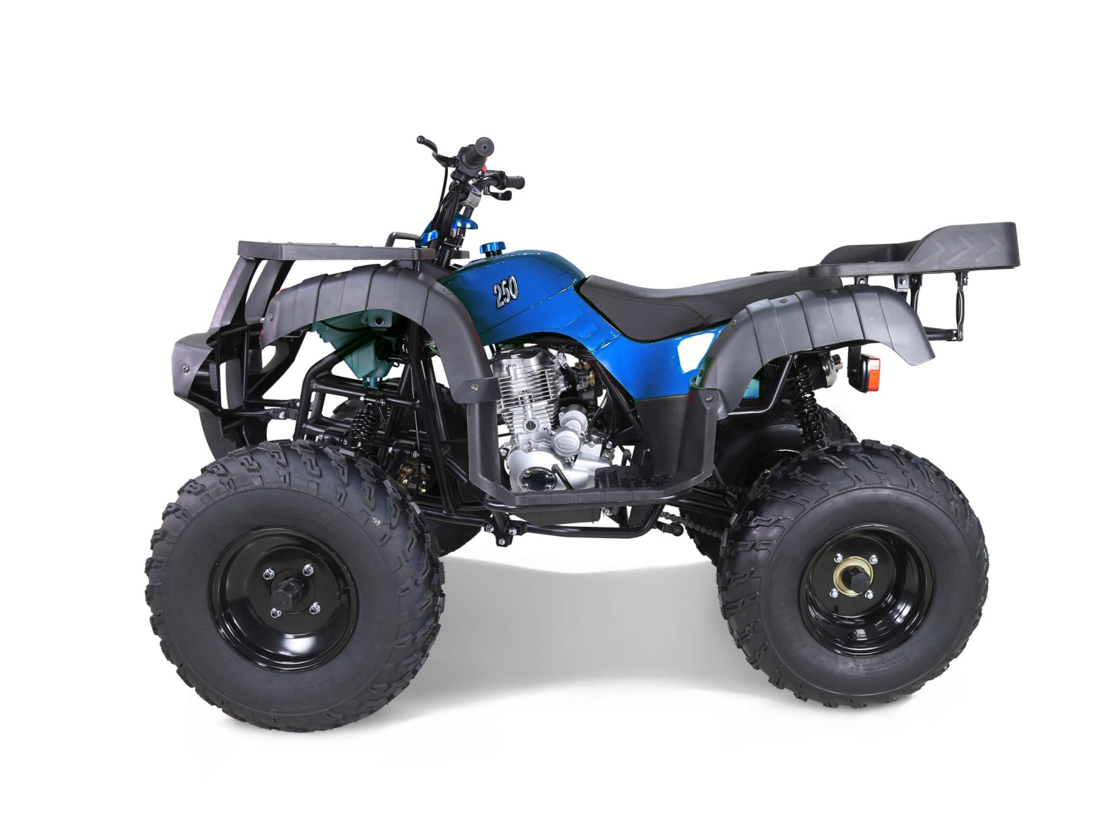 Tao Motor Rhino 250 is an Adult-sized utility ATV with safety in mind. This hard-working and powerful 197cc 4-stroke engine can be used on the farm or enjoyed on your favorite trails. The large cargo racks offer additional space for any items you want to bring. The adjustable suspension, LED lights, and front, and rear brakes provide affordable features only the Rhino 250 can offer. The Rhino 250 is a top choice for an affordable and reliable ATV at a great price.