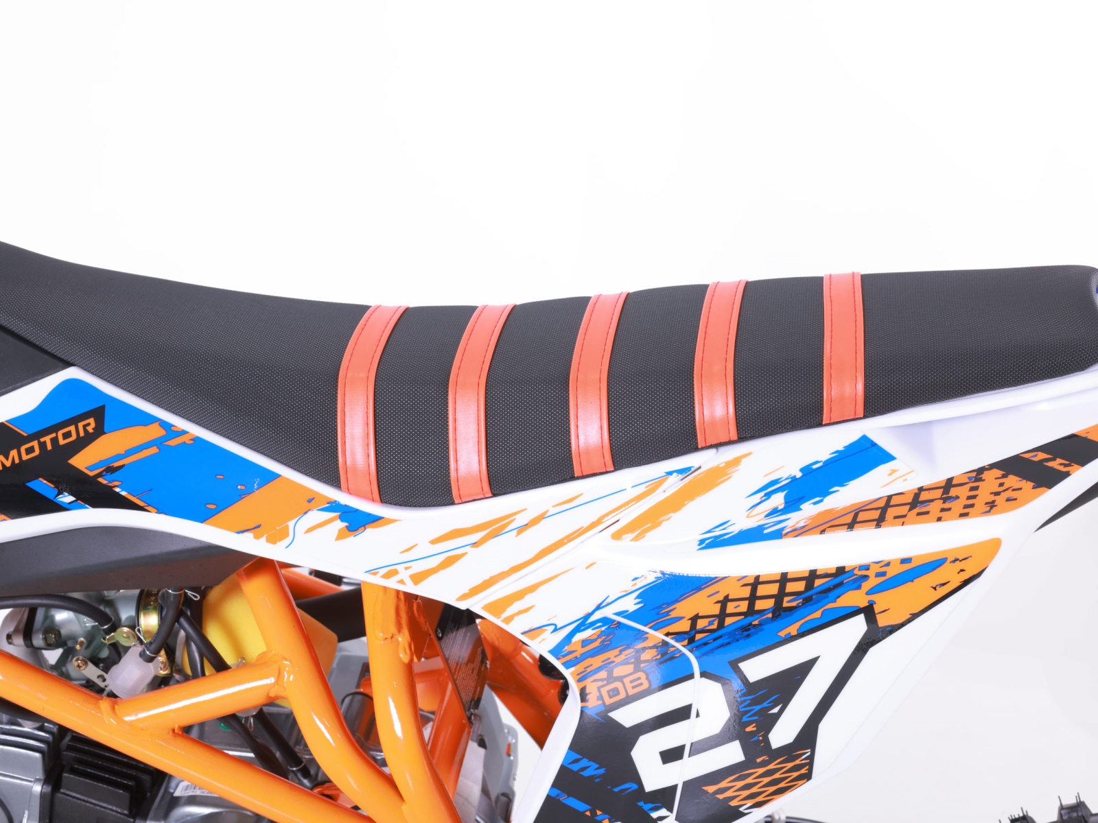 True to our 2022 aesthetic, the DB27 has been revamped with top notch upgrades and looks sharper than ever. A manual 4 speed 125cc Dirt Bike, the DB27 has a powder coated frame, softer than ever handgrips, and a redesigned gripper seat, all of which are designed to match the brand new color options and decal designs. Not set on just visual upgrades, we redesigned the DB27 for an overall better riding experience.