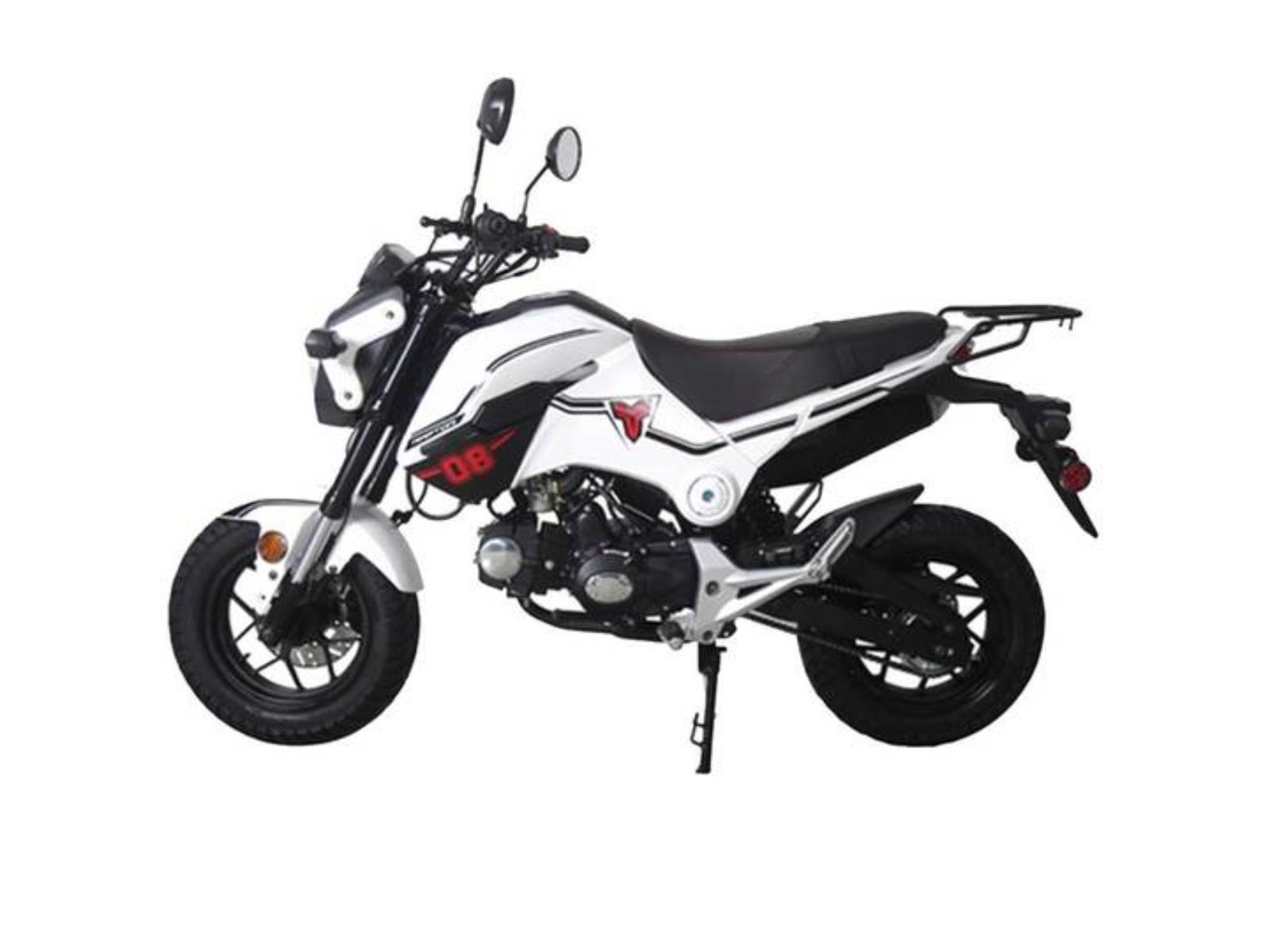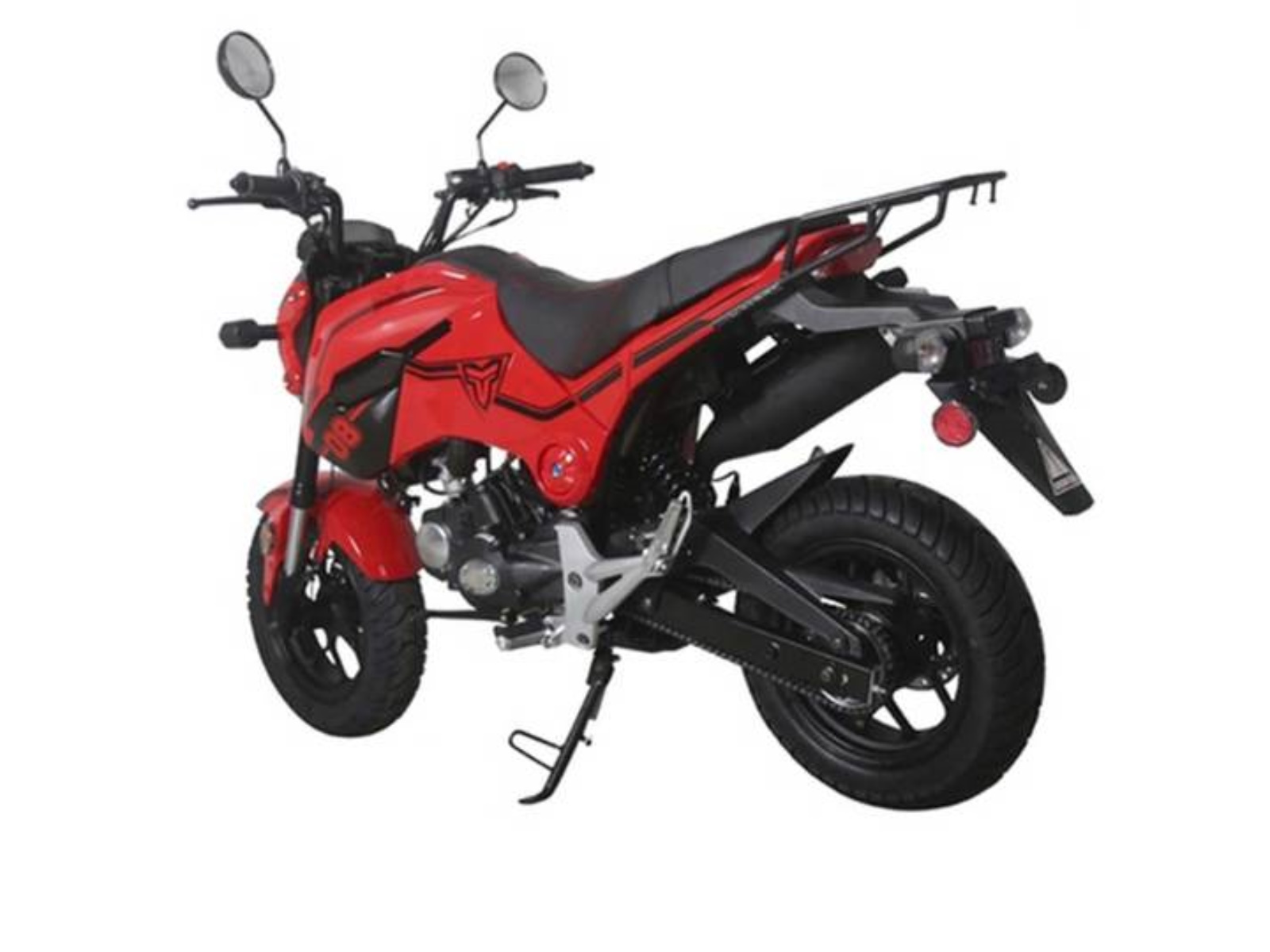 1.5-gallon fuel capacity and many other features to boast, including a nimble 49" wheelbase, chain drive, and dual shock absorber suspension. Choose from blue, red, or white and drive off and onto the road the a competitive price point.