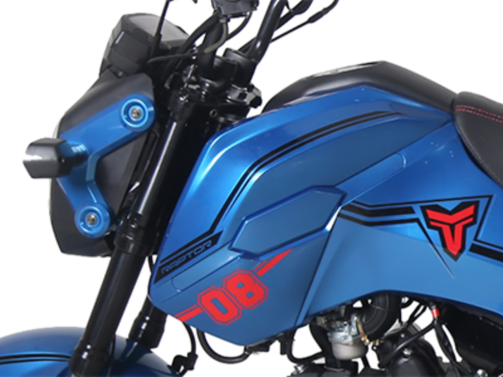 1.5-gallon fuel capacity and many other features to boast, including a nimble 49" wheelbase, chain drive, and dual shock absorber suspension. Choose from blue, red, or white and drive off and onto the road the a competitive price point.