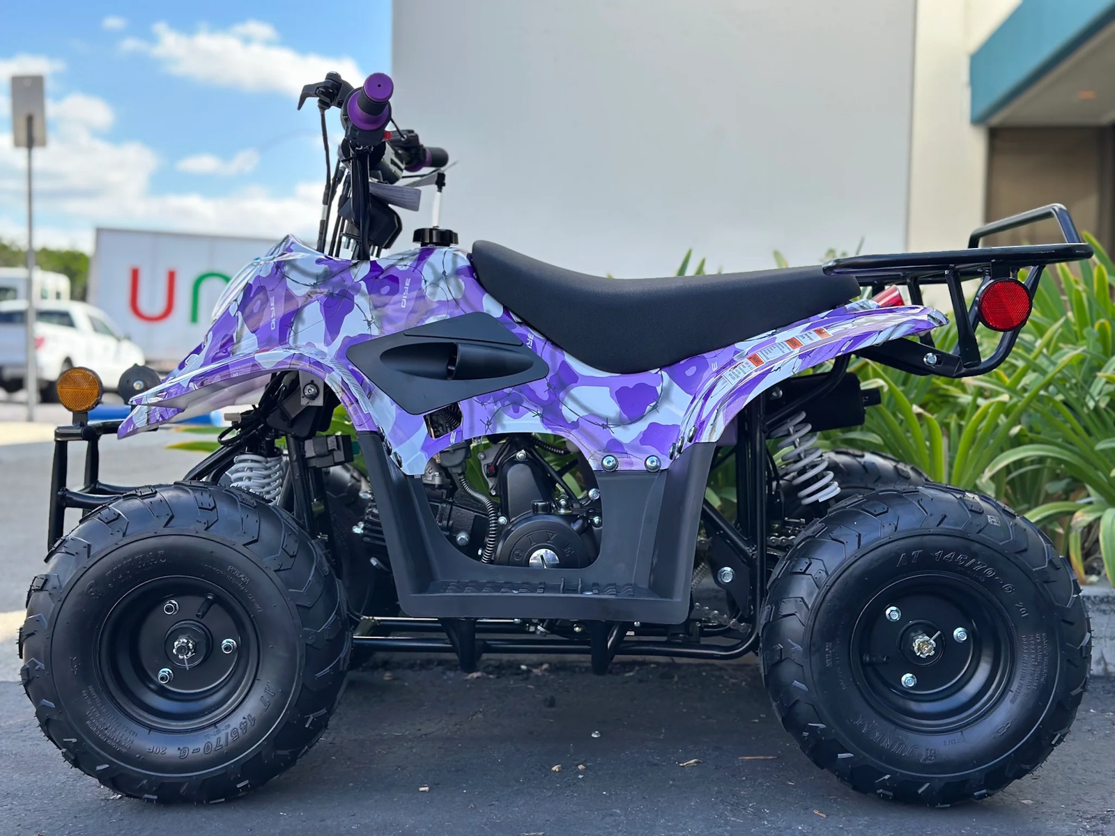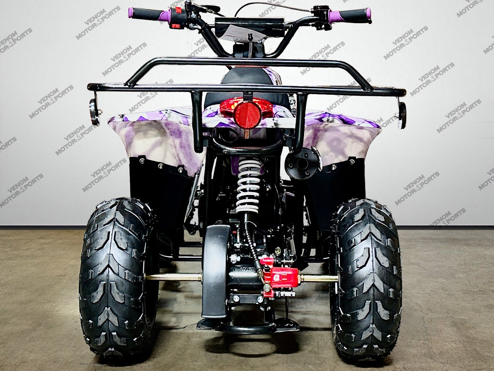 The moccasin 110cc atv has been upgraded with rear hydraulic disk brakes ensuring reliable stopping power and precision control. Engineered for safety and performance, these brakes ensure optimal handling