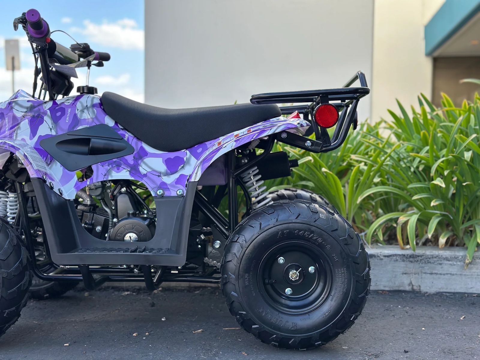 The moccasin atv comes equipped with a metal rear rack, perfect for carrying gear or supplies during your off-road adventures. The rack is designed to handle additional loads, ensuring convenience on every ride.