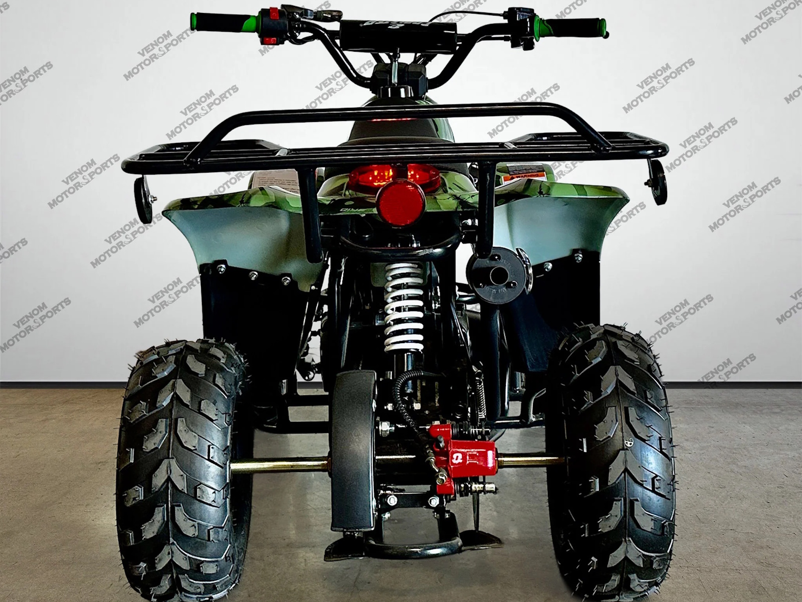 The moccasin 110cc atv has been upgraded with rear hydraulic disk brakes ensuring reliable stopping power and precision control. Engineered for safety and performance, these brakes ensure optimal handling